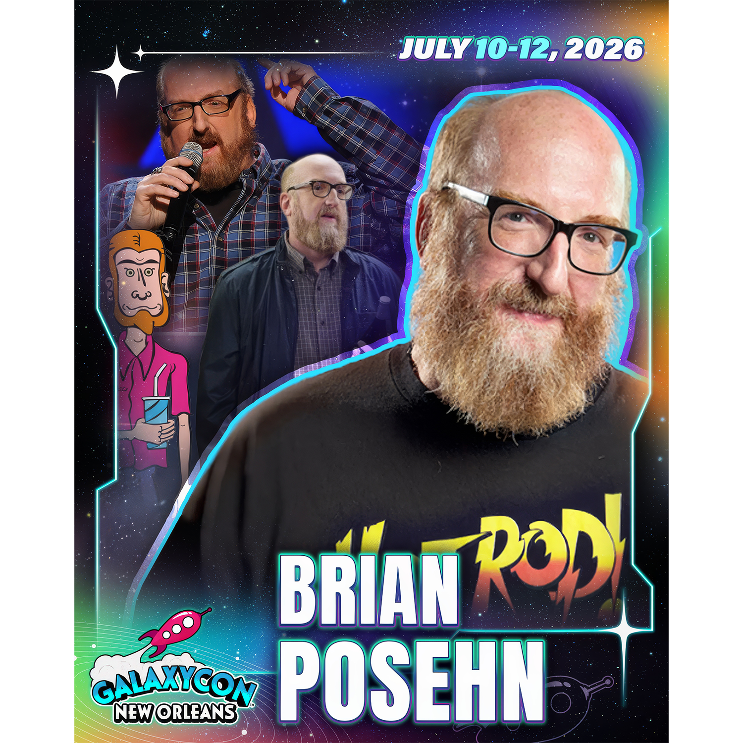 As an official GalaxyCon New Orleans Autograph Service partner, Fénix Autographs is delighted to offer our send-in service for your personal items as well as guest-provided photo options to be signed by Brian Posehn.