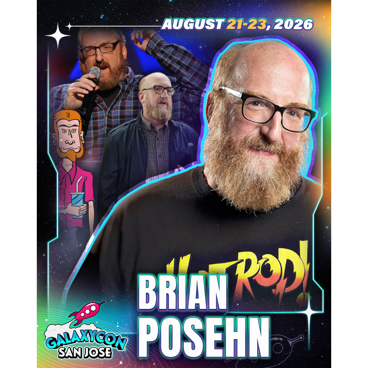 As an official GalaxyCon San Jose Autograph Service partner, Fénix Autographs is delighted to offer our send-in service for your personal items as well as guest-provided photo options to be signed by Brian Posehn.
