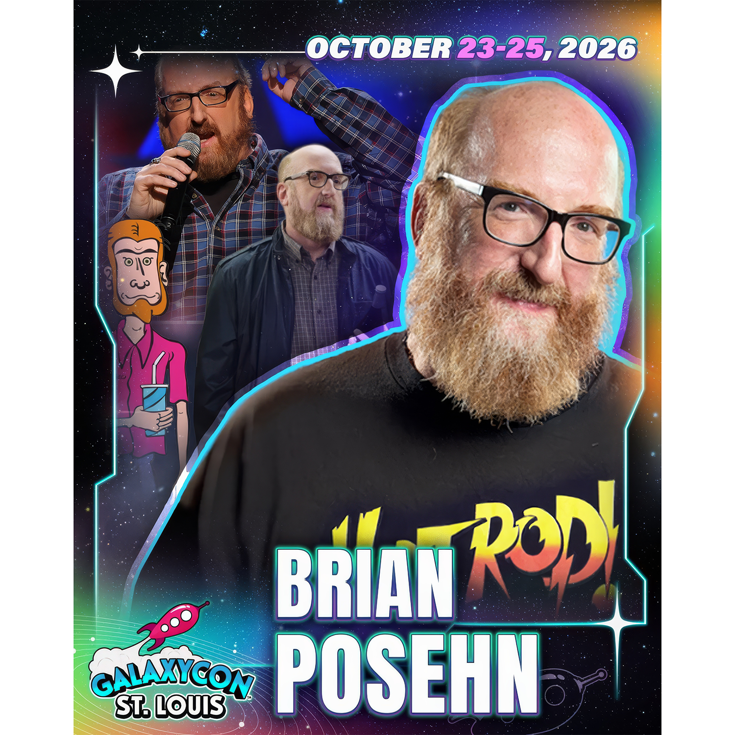 As an official GalaxyCon St. Louis Autograph Service partner, Fénix Autographs is delighted to offer our send-in service for your personal items as well as guest-provided photo options to be signed by Brian Posehn.