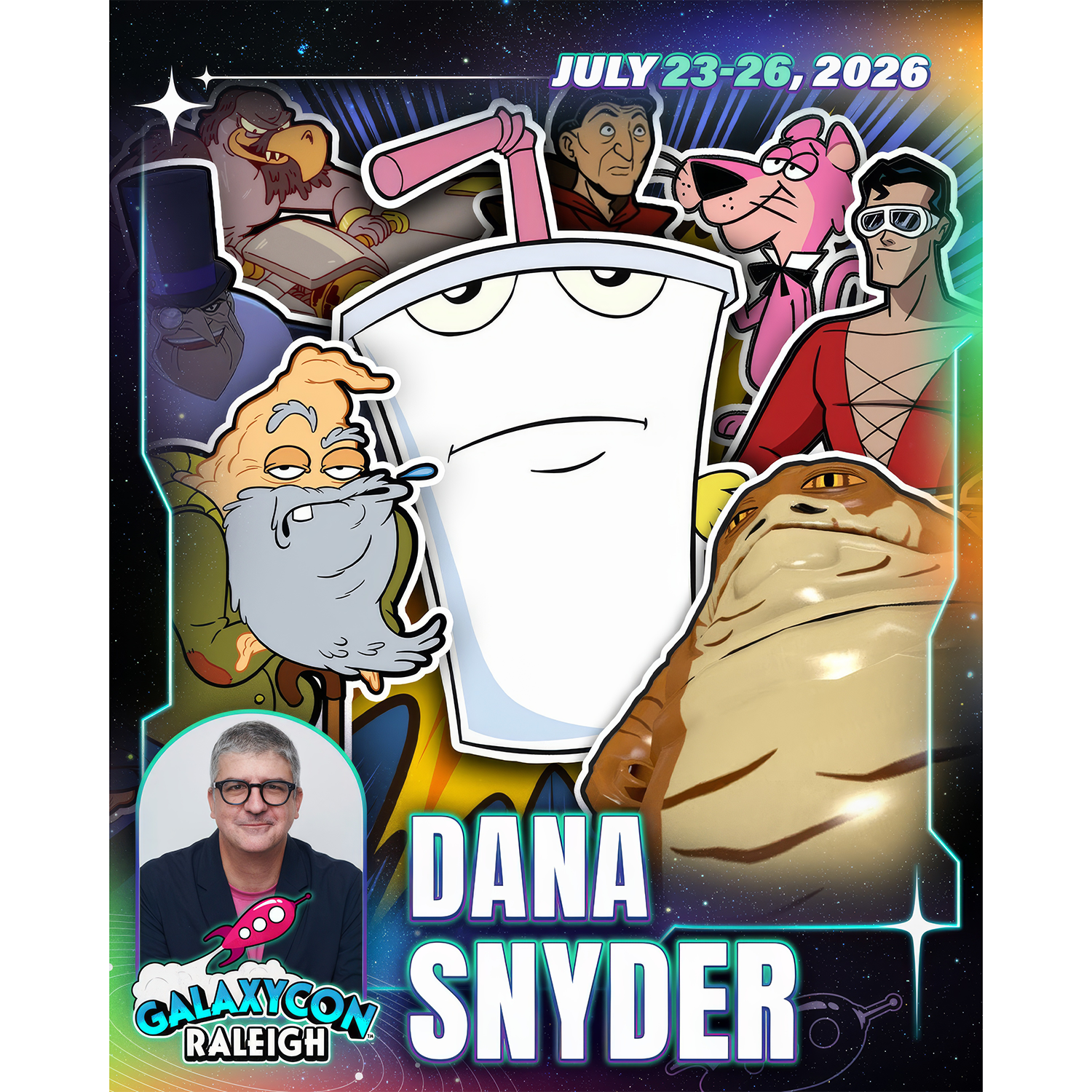 As an official GalaxyCon Raleigh Autograph Service partner, Fénix Autographs is delighted to offer our send-in service for your personal items as well as guest-provided photo options to be signed by Dana Snyder.