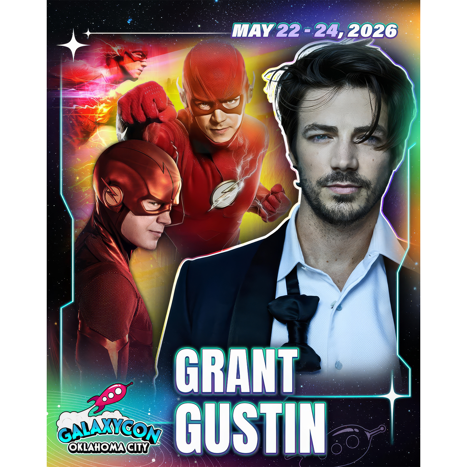 As an official GalaxyCon Oklahoma City Autograph Service partner, Fénix Autographs is delighted to offer our send-in service for your personal items as well as guest-provided photo options to be signed by Grant Gustin.