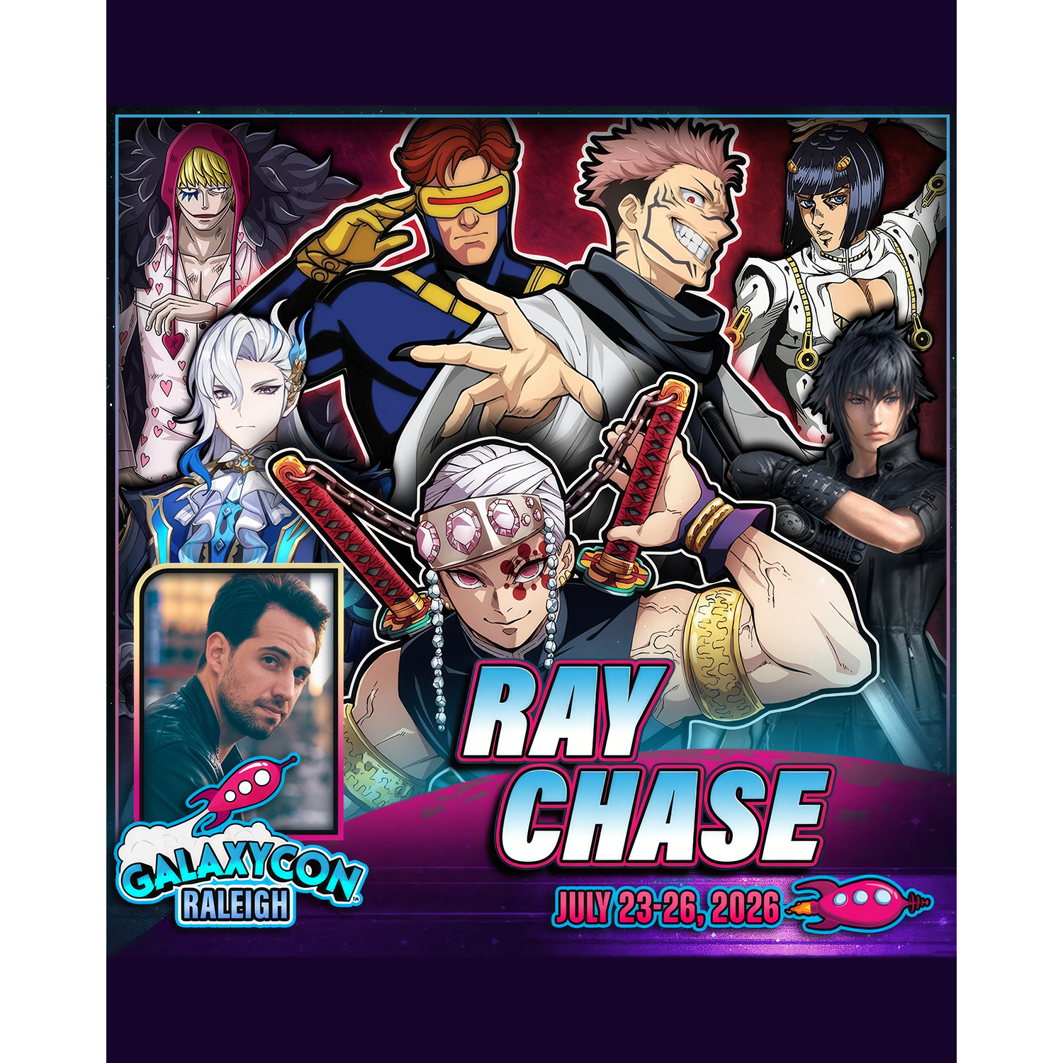 As an official GalaxyCon Raleigh Autograph Service partner, Fénix Autographs is delighted to offer our send-in service for your personal items as well as guest-provided photo options to be signed by Ray Chase.