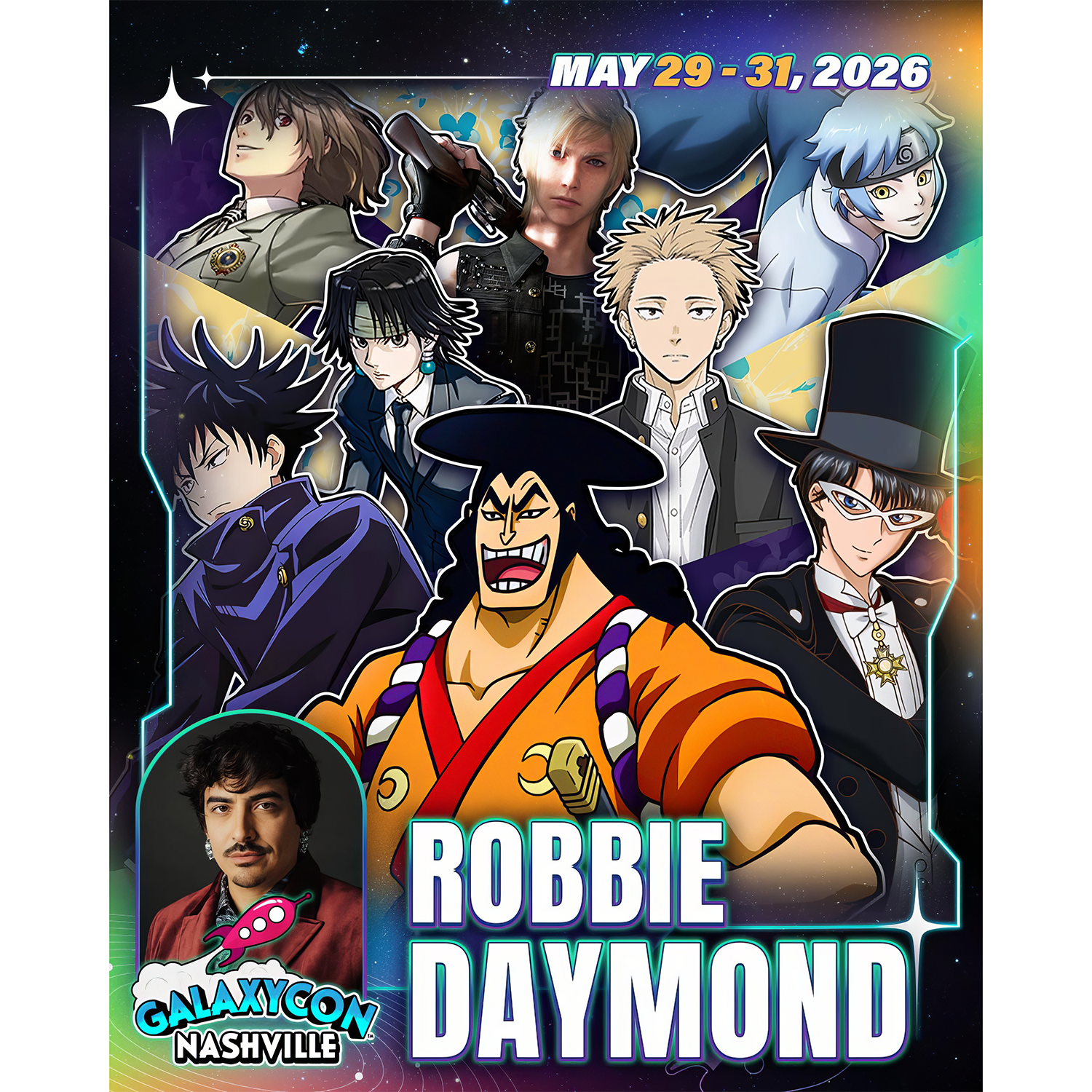 As an official GalaxyCon Nashville Autograph Service partner, Fénix Autographs is delighted to offer our send-in service for your personal items as well as guest-provided photo options to be signed by Robbie Daymond.